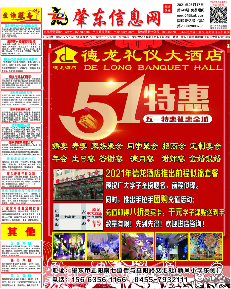 肇東信息網(wǎng)DM報(bào)紙2021年5月17日第243期