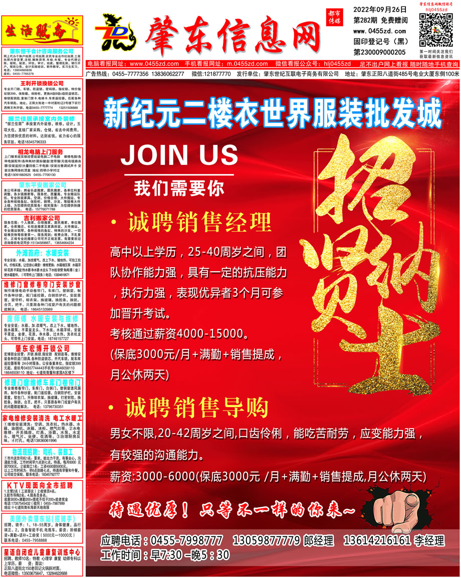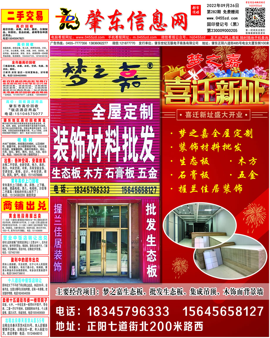 肇東信息網(wǎng)DM報紙2022年9月26日第282期