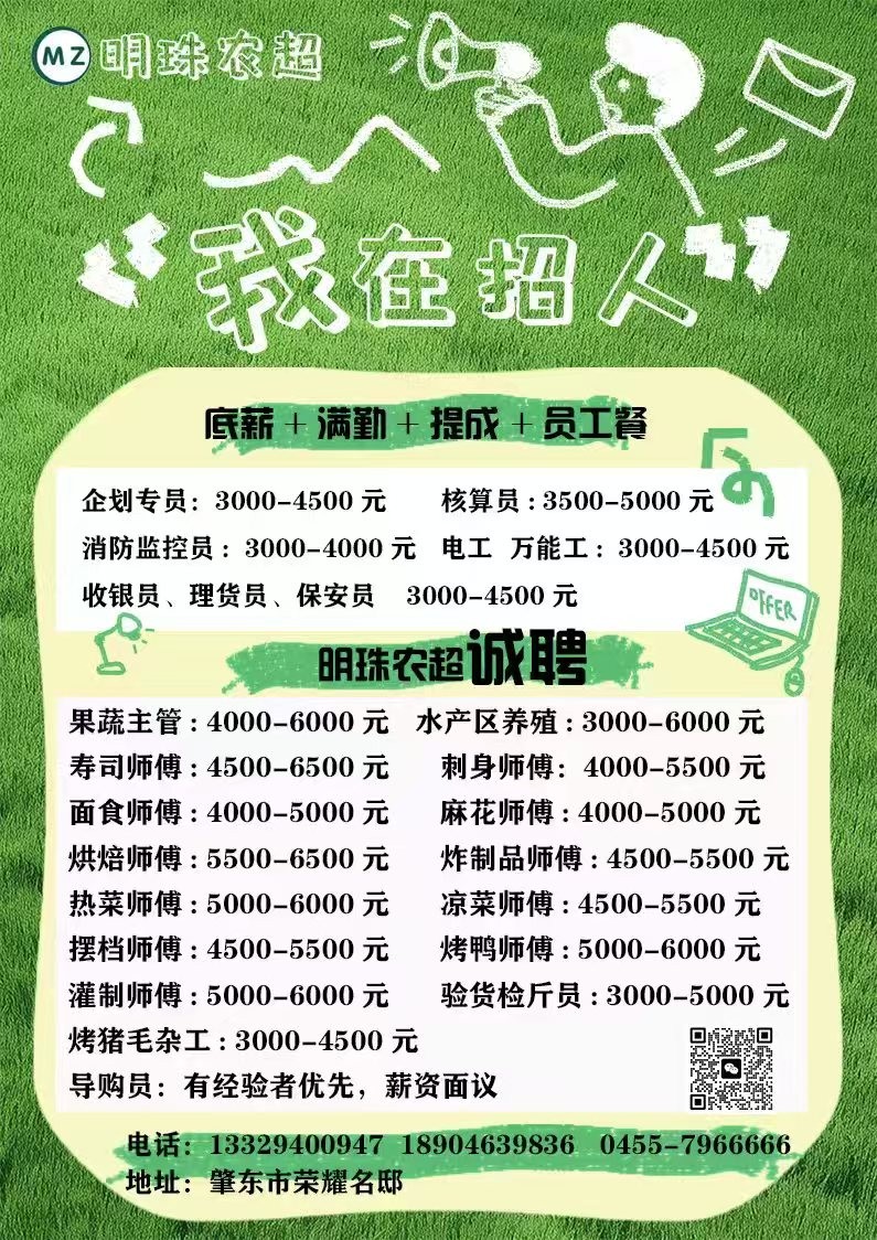 18、導(dǎo)購員:有果蔬及現(xiàn)場加工食品銷售經(jīng)驗者優(yōu)先錄用,薪資面議。