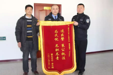 2019年3月1日,肇東市民李云峰來到市交警大隊(duì),將一面寫有“速出警秉公執(zhí)法,為民憂盡職盡責(zé)”的錦旗送給了黃慧斌和劉偉剛兩位警官,感謝他們不辭辛苦連續(xù)工作,還原...