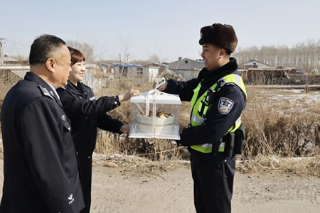 肇東公安:蛋糕送民警 真情暖警營(yíng)