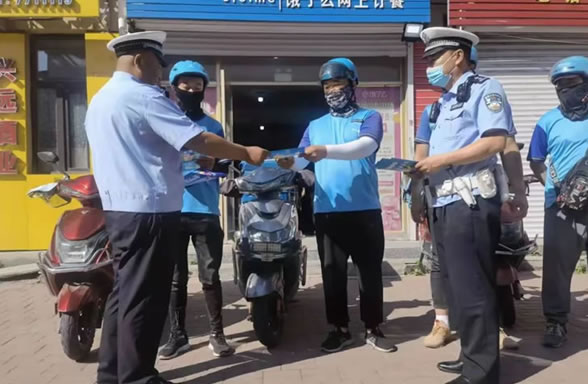 肇東市公安局交警大隊(duì)深入外賣送餐企業(yè)宣傳“一盔一帶”