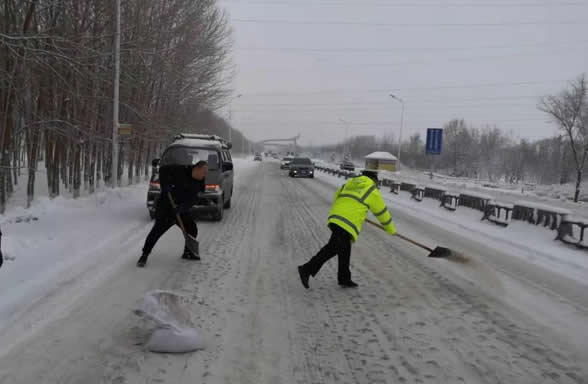 11月7日至今肇東轄區(qū)連續(xù)普降大雪風雪中執(zhí)勤民警持續(xù)奮戰(zhàn)在路面一線護衛(wèi)著群眾出行平安針對暴雪+凍雨+道路結冰狀況提醒廣大駕駛員謹慎慢行保持安全車距,注意行車安全...