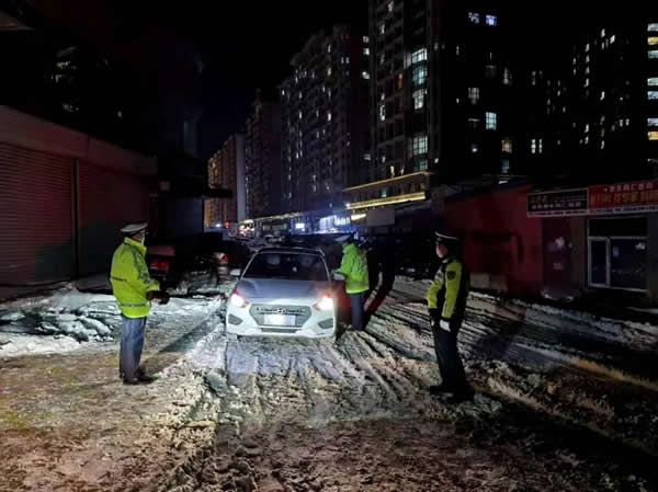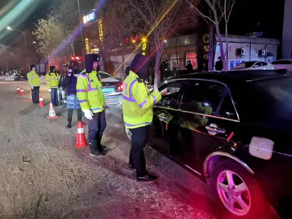由于前一天全市普降大雪,道路結(jié)冰,酒駕等嚴重交通違法行為極易引發(fā)重大道路交通事故,交警大隊針對惡劣天氣的實際情況,采取定點設(shè)卡檢查和機動巡查相結(jié)合的勤務(wù)模式,將查處范圍向農(nóng)村擴展覆蓋,巡警大隊和農(nóng)村派出所通力配合,協(xié)同作戰(zhàn)。交警大隊大隊長帶領(lǐng)班子成員到執(zhí)法一線靠前指揮,全體干警履職盡責,在全市轄區(qū)路網(wǎng)布置起了嚴查酒駕違法行為的“天網(wǎng)”。
