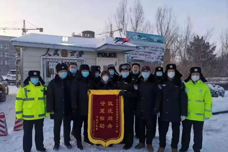 2月1日,哈大高速公路肇東卡口收到于某母子贈送的錦旗,上面印有“抗疫同舟,守望相助”,對卡口執(zhí)勤民警雪中送炭、熱心幫助的擔(dān)當(dāng)作為表達(dá)了感激之情。