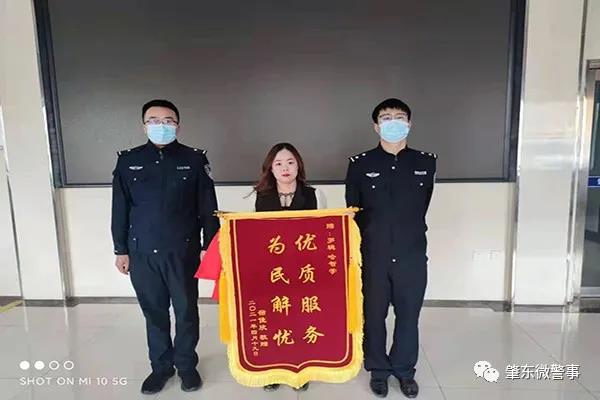 4月19日,肇東市居民宿女士來到南城派出所,將一面印有“優(yōu)質(zhì)服務(wù) 為民解憂”的錦旗送給派出所民警,以表達民警為其找回手機的感激之情。