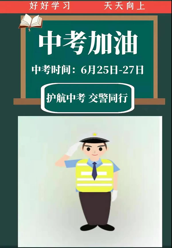 2.中考期間,所有機動車輛要嚴格遵守道路交通法規(guī),按照現(xiàn)場執(zhí)勤民警的指揮或根據(jù)交通指示牌指示行駛。