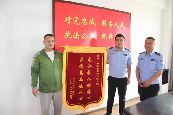 8月16日,肇東市民苗建臣的家人來到肇東市公安局交警大隊,送來一面印有“無私救人獻(xiàn)愛心,品德高尚暖人心”的錦旗,對輔警丁銳熱心救助其父親的行為表示由衷的感謝。