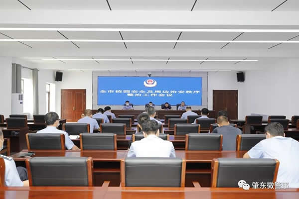 公安局四級高級警長王西喬,治安、戶政、刑警、交警、巡特警、禁毒、食藥環(huán)偵等警種負(fù)責(zé)同志,教育局相關(guān)負(fù)責(zé)同志在主會場參加會議;城鄉(xiāng)派出所長和駐校民警,中小學(xué)校校長、幼兒園園長、校外辦學(xué)機(jī)構(gòu)負(fù)責(zé)人通過視頻會議系統(tǒng)在分會場參會。
