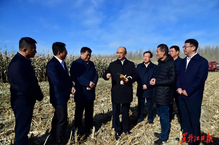 省委書記許勤在肇東市向陽(yáng)鄉(xiāng)日新村秋收現(xiàn)場(chǎng),了解秋收情況。