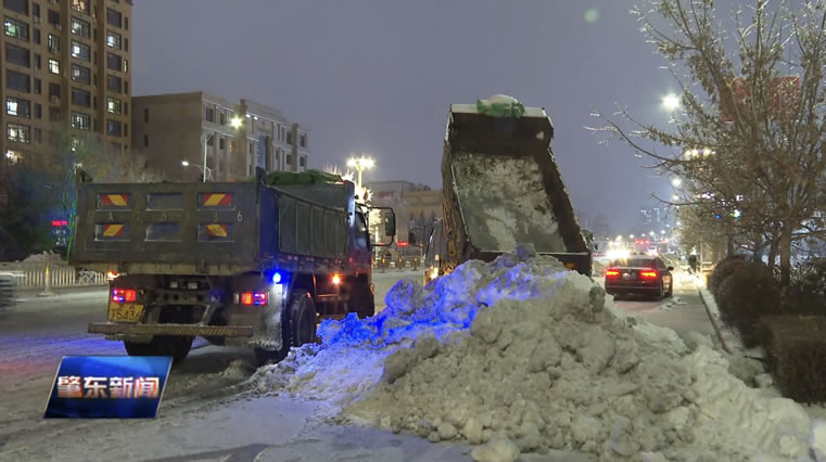 11月8日,入冬后的首場降雪,降雪量大、積雪厚,為切實保障城市正常運轉(zhuǎn)、居民出行安全,市城市管理綜合執(zhí)法局第一時間組織環(huán)衛(wèi)工人投入一線開展清雪作業(yè),并組織進行了“挑燈夜戰(zhàn)”“連軸轉(zhuǎn)”清雪,采取人機結(jié)合、人員輪班上崗、清雪車輛不停的作" />