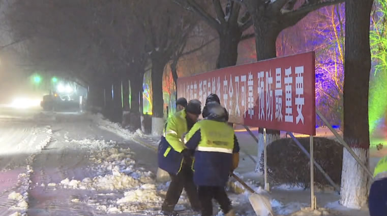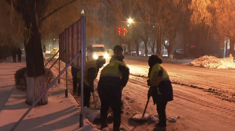 我們利用夜間車流少的有利時間段,出動大型除雪車、推雪鏟50余臺,500余名環(huán)衛(wèi)工人,對城區(qū)各條街路進行清掃,清掃作業(yè)將持續(xù)24小時,確保道路暢通、市民出行安全。