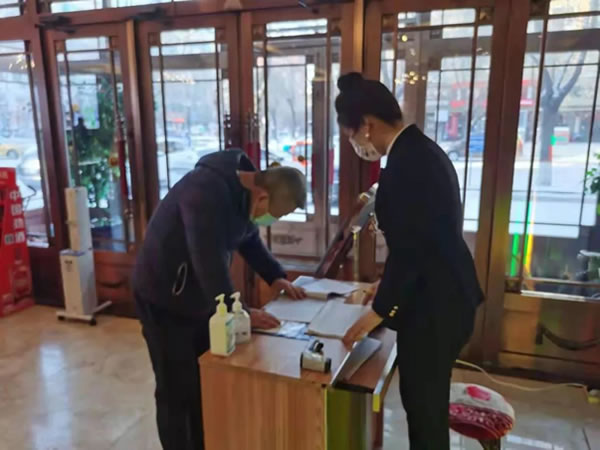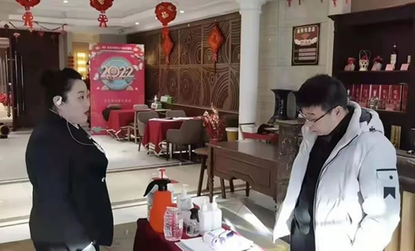 為確保節(jié)日期間全市大型餐飲疫情防控安全,經(jīng)局黨組會研究決定,抽調(diào)了34名駐店防控人員分派到各監(jiān)管分局,分赴各大型餐飲單位進(jìn)行駐店監(jiān)督,重點(diǎn)監(jiān)督檢查承辦大型宴會單位是否嚴(yán)格落實(shí)“測溫掃雙碼戴口罩”,顧客是否持有48小時內(nèi)有效核酸證明。