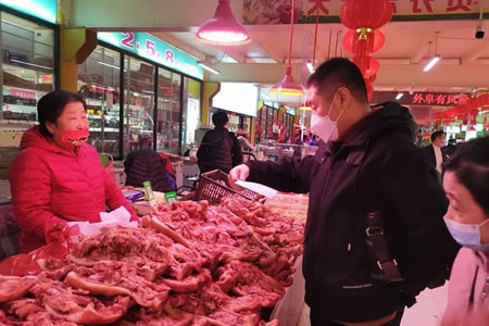 2022年3月2日,肇東市市場(chǎng)監(jiān)管局組織執(zhí)法抽檢人員對(duì)肇東市陽(yáng)光農(nóng)貿(mào)市場(chǎng)進(jìn)行監(jiān)督檢查。