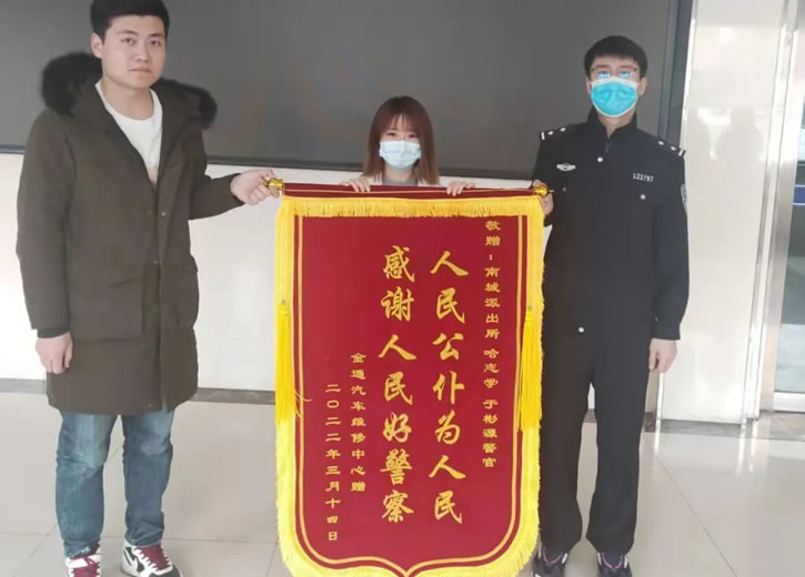 近日,肇東市七道街居民韓女士將一面印有“人民公仆為人民、感謝人民好警察”的錦旗,贈予南城派出所的民警,以表達民警為其找回失物,挽回數(shù)千元經(jīng)濟損失的感激之情。