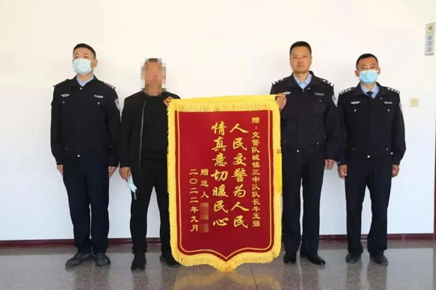 9月中旬,肇東市七道街利民城附近人行道違停三輛翻斗車嚴重影響行人通行,造成一周姓老年人因躲避車輛而摔倒,如果不及時處理可能造成其它嚴重后果。城鎮(zhèn)三中隊得知情況后立即趕到現(xiàn)場,根據(jù)具體情況將三輛車托運至停車場,消除了安全隱患,得到周邊群眾一片叫好聲。9月25日,被摔倒老人的兒子為感謝交警,送來一面寫有“人民交警為人民 情真意切暖民心”的錦旗表示感謝!