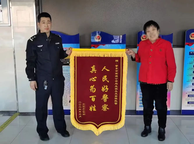 在辦理過程中,民警向家屬表示新身份證制作完成后,第一時(shí)間將證件送到群眾家里,王女士一家對(duì)民警的熱心服務(wù)表示感謝,并將一面寫有“人民好警察、真心為百姓”的錦旗交到南城派出所民警手中。