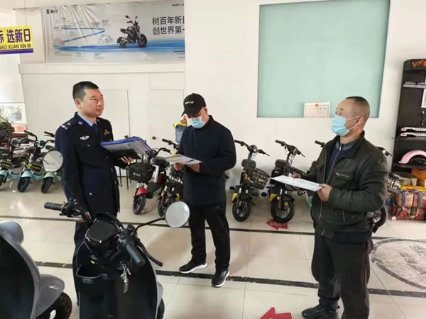 在經(jīng)銷(xiāo)商鋪,民警對(duì)電動(dòng)車(chē)經(jīng)銷(xiāo)商應(yīng)履行的責(zé)任、義務(wù)和消費(fèi)者享有的權(quán)利等方面,對(duì)《黑龍江省電動(dòng)車(chē)管理?xiàng)l例》進(jìn)行了詳細(xì)解讀,要求各電動(dòng)車(chē)經(jīng)銷(xiāo)商在銷(xiāo)售電動(dòng)車(chē)時(shí)必須依法向消費(fèi)者提供購(gòu)車(chē)發(fā)票、產(chǎn)品合格證,并告知產(chǎn)品特征,從銷(xiāo)售環(huán)節(jié)上杜絕違規(guī)電動(dòng)車(chē)上路行駛。