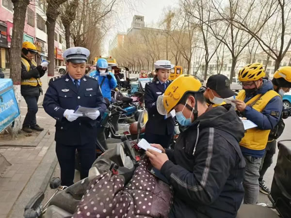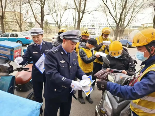 在快遞外賣(mài)企業(yè)及人員聚集場(chǎng)所,民警以發(fā)放宣傳資料、粘貼《黑龍江省電動(dòng)車(chē)管理?xiàng)l例》宣傳單等方式,詳細(xì)講解電動(dòng)車(chē)的種類(lèi)、認(rèn)定標(biāo)準(zhǔn)、電動(dòng)車(chē)登記程序等通行規(guī)定。提醒廣大群眾在騎乘電動(dòng)車(chē)時(shí)要正確佩戴合格的安全頭盔,杜絕闖紅燈、逆向行駛、酒后駕駛等各類(lèi)交通違法行為。引領(lǐng)廣大群眾遵守電動(dòng)車(chē)通行規(guī)定,摒棄交通陋習(xí),做到守法規(guī)知禮讓?zhuān)踩拿鞒鲂小?/p>