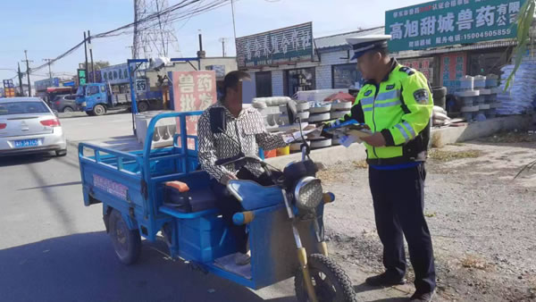 當(dāng)前正值秋收旺季,為持續(xù)推進(jìn)“保秋收 壓事故”專項(xiàng)整治行動(dòng),做好轄區(qū)農(nóng)村道路交通安全管理工作,全力遏制和減少秋收農(nóng)忙季節(jié)道路交通事故。近日,肇東公安交警聯(lián)合市農(nóng)業(yè)農(nóng)村局,積極組織人力深入村鎮(zhèn)開(kāi)展交通安全宣傳活動(dòng),為秋收時(shí)節(jié)農(nóng)村地區(qū)筑牢交通安全防線。