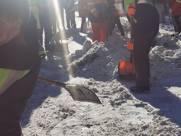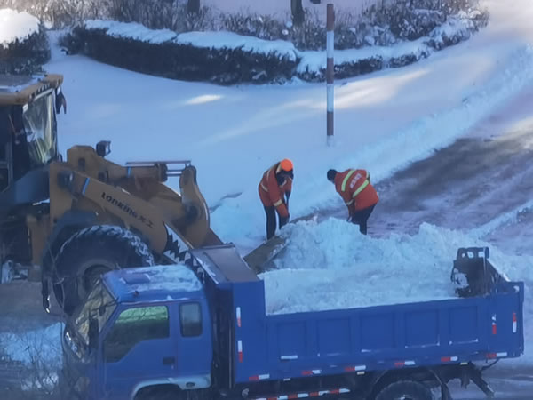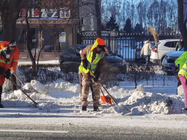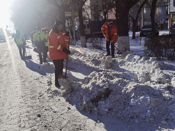 目前城區(qū)主干路已經(jīng)露出了黑色的路面,積雪外運工作正在持續(xù)推進中。但由于此次降雪持續(xù)時間長,降雪量大,為了有效配合機械化清雪作業(yè),近七百名環(huán)衛(wèi)工人在肇東市主干路進行加班加點作業(yè),保證道路安全暢通。