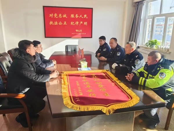 11月13日,肇東市第八中學(xué)校長王慶和副校長王大偉來到交警大隊(duì),將一面印有“警校聯(lián)動愛學(xué)生,疏導(dǎo)交通平安行”的錦旗送到交警大隊(duì)城鎮(zhèn)一中隊(duì),代表全校師生由衷感謝城鎮(zhèn)一中隊(duì)“護(hù)學(xué)崗”執(zhí)勤人員情系師生出行安全,維護(hù)校園周邊道路交通秩序,保障全校師生上下學(xué)期間交通安全、有序、暢通。