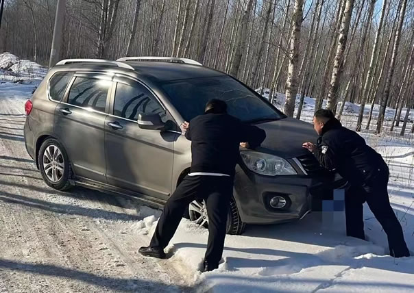 “警察同志,我的車陷在雪中出不來了,你們能不能幫幫我?”肇東市公安局五里明派出所接到了一通焦急的救助電話。