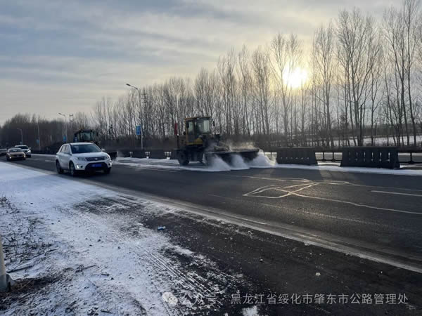 中心領(lǐng)導班子針對路況實際,細部署、嚴組織、實應(yīng)對,加強應(yīng)急值守,帶頭深入一線巡查,第一時間組織人員對積冰路段撒布融雪劑進行融冰,同時科學調(diào)度除雪機械、合理安排除雪人員,采取清雪設(shè)備除雪、鋪撒砂石料防滑等措施,力爭短時間內(nèi)實現(xiàn)“一通二暢三凈”,確保春運行車安全有序。