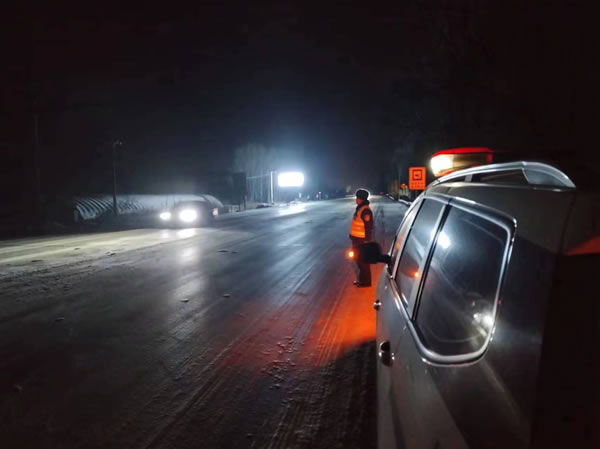 肇東市公安局交警大隊和國、省道沿線派出所民警輔警全員上崗,緊盯積雪結(jié)冰重點部位和車流密集場所周邊路段,積極采取措施,采取定點執(zhí)勤與流動巡邏相結(jié)合的方式,加強路面管控和交通疏導(dǎo),全力防事故、保暢通。同時,增派人手,一旦發(fā)生交通事故,第一時間到達現(xiàn)場處置,并及時疏導(dǎo)交通,引導(dǎo)車輛有序通行。