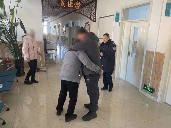 2月26日早上7時許,五站派出所值班民警接五站鎮(zhèn)東安村村民安某報警稱,在五站鎮(zhèn)東安村道口發(fā)現(xiàn)一人躺在路邊溝里,生死不明。民警立即出警,在五站鎮(zhèn)301國道與東安村路交叉口南側溝里發(fā)現(xiàn)一女子躺在樹下,經(jīng)詢問該人神志清醒,生命體征尚好,但由于受凍時間較久,無法說明姓名、地址及家人情況,手機關機狀態(tài),民警立即將該女子送往五站鎮(zhèn)衛(wèi)生院緊急救治。隨即民警通過僅有的信息查詢到該女子名叫呂某軍,戶籍地址為五大連池市四平鄉(xiāng)某村居民。民警聯(lián)系到其父親呂某利,呂某利稱女兒患有抑郁癥,于2024年2月25日走失,全家人正在四處尋找呂某,正不知所措時接到民警電話,呂某利和女子丈夫王某看到呂某安然無恙,已經(jīng)脫離險境時,不勝感激,抱頭痛哭。家人對民警的救助行為表示萬分感謝,并表示將在今后加強關心照顧,避免再次走失,隨即該女子被其家人接回。