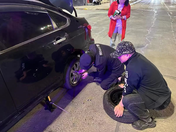 肇東公安:夜間行車(chē)輪胎被扎 民警化身“修車(chē)工”解民困!