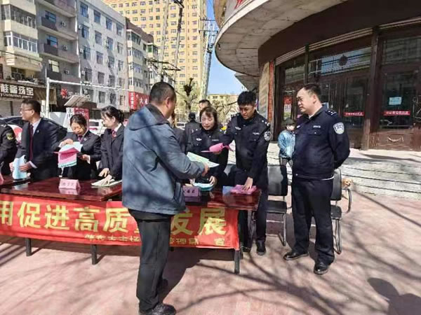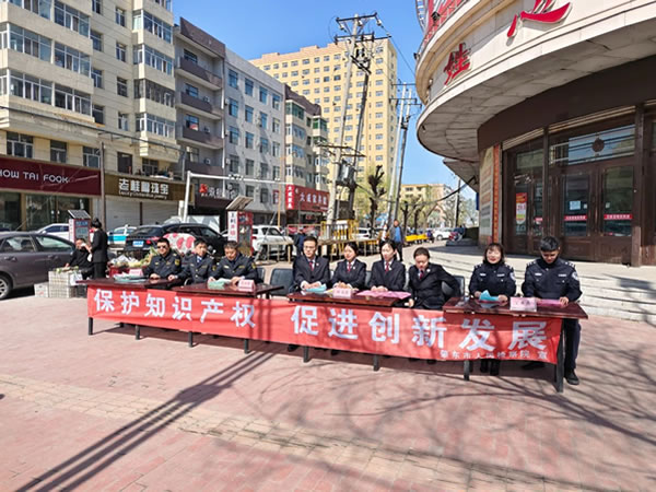 4月26日上午,在第24個(gè)“世界知識產(chǎn)權(quán)日”到來之際,肇東市公安局食藥環(huán)偵大隊(duì)聯(lián)合市場監(jiān)督管理局、司法局、人民檢察院在肇東市四道街兄弟家電城門前開展“知識產(chǎn)權(quán)轉(zhuǎn)化應(yīng)用、促進(jìn)高質(zhì)量發(fā)展”為主題的普法宣傳活動,進(jìn)一步提升全民知識產(chǎn)權(quán)的保" />