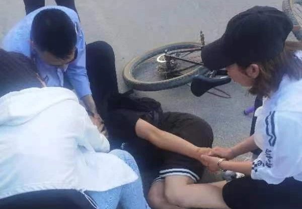 6月25日下午16時正值中考期間,在園林南路與消防街交叉路口執(zhí)勤的周雪峰等三位交警發(fā)現(xiàn),一名初中生摸樣的小男孩突然摔倒在路口,見此情景,三名交警急忙跑過去查看情況并積極救治。