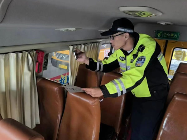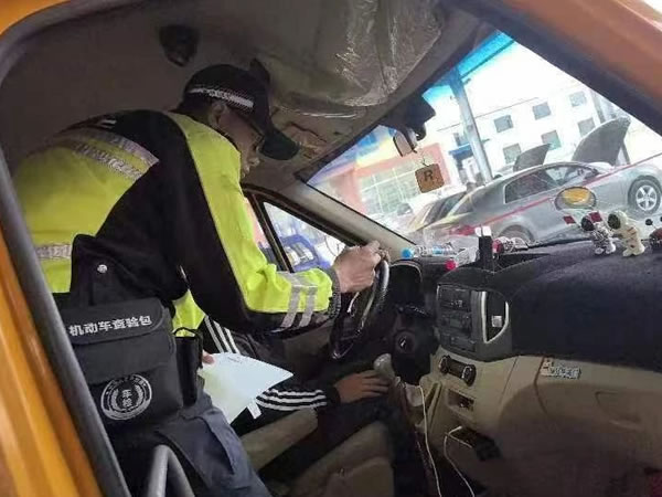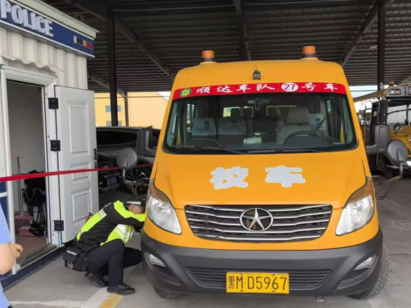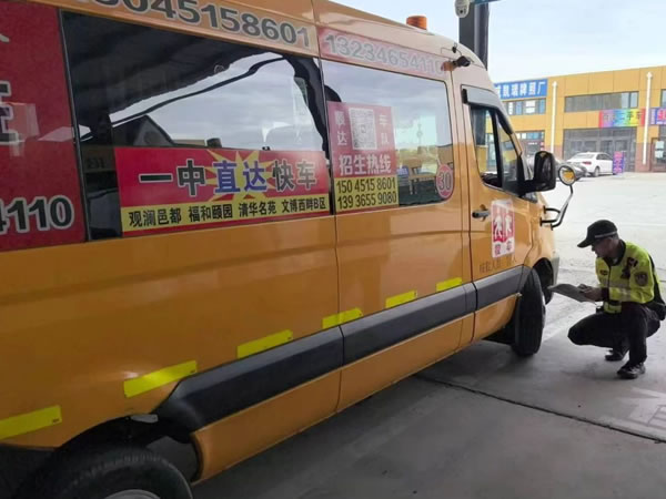 查驗(yàn)過(guò)程中,民警對(duì)校車標(biāo)志、滅火器、安全帶、安全錘、緊急逃生門、車輛燈光、停車指示牌、車輛年檢及保險(xiǎn)、輪胎的安全性能及校車技術(shù)狀況、安全駕駛情況以及校車安全管理措施落實(shí)情況等方面進(jìn)行安全大檢查。同時(shí)認(rèn)真核對(duì)了校車駕駛?cè)说鸟{駛資質(zhì),聽(tīng)取了校車負(fù)責(zé)人對(duì)校車出行方式、安全隱患排查整治、企業(yè)主體責(zé)任落實(shí)情況介紹,并要求校車駕駛?cè)艘杂X(jué)遵守交通法規(guī),安全行駛、平安出行。