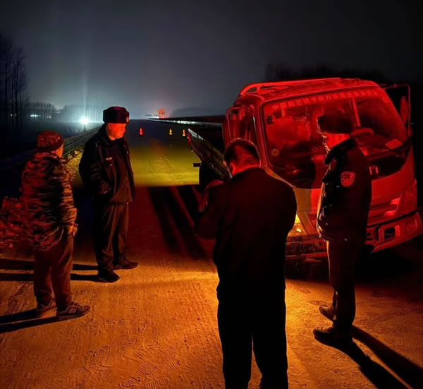 2024年11月27日20時許,家住哈爾濱市的個體司機王先生駕駛自營奧鈴牌貨車行駛至哈肇高速銀山服務(wù)區(qū)附近時,因粗心大意未做好車輛日常檢查,再加上道路冰雪濕滑,致使右側(cè)前輪脫落10余米,車輛發(fā)生單方事故。接到求助后,民輔警迅速協(xié)調(diào)因道路結(jié)冰封閉的哈肇高速,第一時間進入高速公路開展施救。到達現(xiàn)場后,民輔警一邊安撫群眾情緒,一邊查看車輛輪胎情況并詢問車主是否還有備胎。同時聯(lián)系救援拖車,將事故車輛拖至安全路段。受冷空氣影響,因剛下過大雪,夜間溫度極低。但民輔警絲毫沒有受嚴(yán)寒天氣影響,考慮到群眾回家的急切心情,無一人嫌麻煩和放棄。經(jīng)過近半個小時的不懈努力,終于幫群眾將車帶離事故區(qū)域。