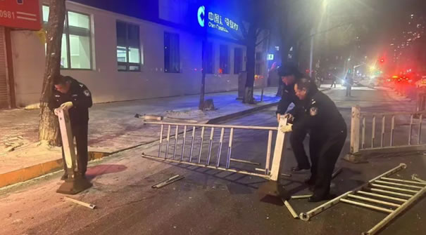 1月28日除夕當(dāng)天,肇東市迎來大范圍低溫降雪,低溫降雪導(dǎo)致城區(qū)路段有結(jié)冰現(xiàn)象發(fā)生,過往車輛時常發(fā)生打滑失控,撞上馬路中間的護(hù)欄,變形、倒地的破損護(hù)欄嚴(yán)重影響車輛及群眾的出行安全。肇東市公安局奮斗派出所民輔警巡邏至八道街建設(shè)銀行路口時,發(fā)現(xiàn)路口中間的隔離護(hù)欄被撞壞,過往車輛紛紛避讓,影響正常的道路通行,加之天黑,稍不留神,極易造成安全事故,存在很大的安全隱患。見此情景,民警劉長軍、吳復(fù)生、王海瑩、輔警邵建壹迅速來到事發(fā)現(xiàn)場,及時將撞壞的護(hù)欄扶正擺好,把護(hù)欄移至原位,同時指揮過往車輛完全通行。經(jīng)過民警二十多分鐘的精心維護(hù),終于把斷裂護(hù)欄修好歸位,保證了車輛行人的通行安全,受到了過往司機朋友的點贊。