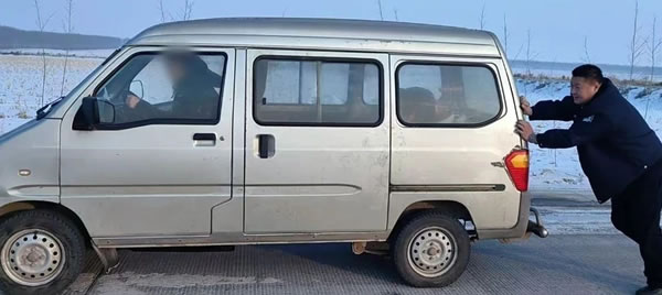 1月27日,哈市松北區(qū)的劉女士,在駕駛途中遭遇車輛故障無法啟動,無助地停在了五里明磚廠附近。心急如焚的她,撥通了五里明派出所的電話。接到救助電話,值班民警史樹生迅速做出反應,第一時間派出支文學和吳甫全兩名工作人員前往救援。
