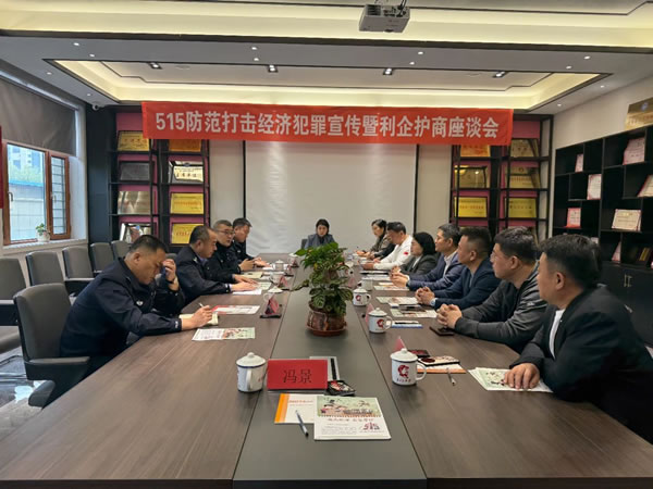 為了進(jìn)一步推進(jìn)宣傳活動(dòng),副局長(zhǎng)武立志帶領(lǐng)經(jīng)偵大隊(duì)民輔警與市工商聯(lián)召開“5.15”防范打擊經(jīng)濟(jì)犯罪宣傳利企護(hù)商座談會(huì),會(huì)上武立志同經(jīng)偵民警圍繞如何保護(hù)企業(yè)權(quán)益、護(hù)航企業(yè)發(fā)展,堅(jiān)持源頭防范侵害企業(yè)的經(jīng)濟(jì)犯罪,動(dòng)態(tài)聯(lián)合企業(yè)進(jìn)行預(yù)警,同時(shí)經(jīng)偵民警對(duì)企業(yè)提出的關(guān)于經(jīng)濟(jì)犯罪的疑問一一進(jìn)行解答,并為企業(yè)講解了非法集資、組織、領(lǐng)導(dǎo)傳銷、職位侵占、合同詐騙等經(jīng)濟(jì)犯罪的典型案例,對(duì)作案手法、作案特點(diǎn)進(jìn)行了詳細(xì)的講解,提高企業(yè)對(duì)經(jīng)濟(jì)犯罪的防范能力,從根本上遏制經(jīng)濟(jì)犯罪的發(fā)生。