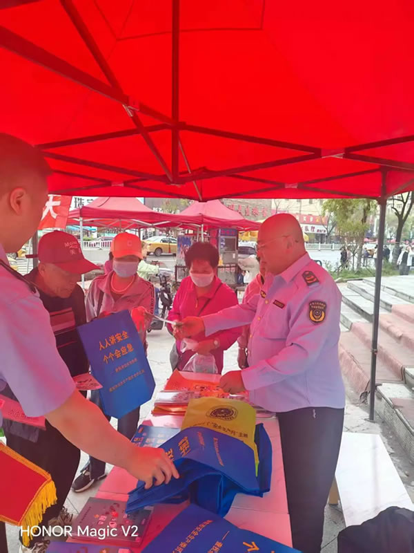 肇東市市場監(jiān)管局特種設(shè)備安全監(jiān)察股股長勾成文和特種設(shè)備監(jiān)察人員,在商業(yè)聚集區(qū)設(shè)立宣傳臺,懸掛宣傳橫幅,發(fā)放相關(guān)宣傳資料,向過往群眾宣貫《中華人民共和國特種設(shè)備安全法》、《黑龍江省電梯安全條例》、《電梯維護(hù)保養(yǎng)服務(wù)規(guī)范》等相關(guān)法律法規(guī)和安全使用知識。現(xiàn)場解答群眾提問、為群眾普及知識,答疑解惑,引導(dǎo)群眾積極參與特種設(shè)備安全群防共治,切實(shí)提高群眾特種設(shè)備安全意識和應(yīng)急防范能力。