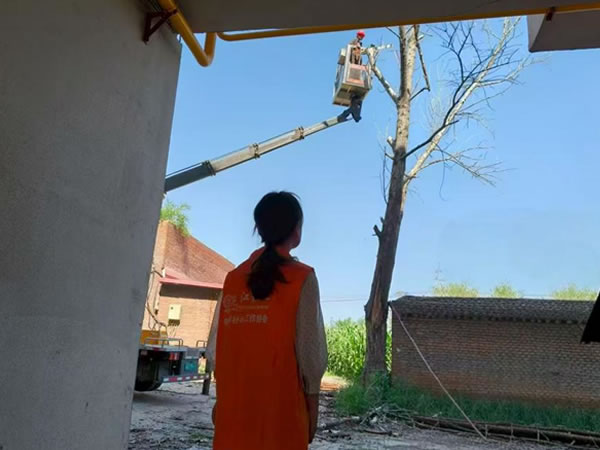 在伐樹(shù)當(dāng)天,東升民政服務(wù)站社工也早早來(lái)到現(xiàn)場(chǎng),疏導(dǎo)枯樹(shù)附近停放的車輛,引導(dǎo)居民有序繞行。經(jīng)過(guò)專業(yè)人員兩個(gè)多小時(shí)的緊張工作,最終,枯萎樹(shù)木被逐一伐倒,危險(xiǎn)樹(shù)枝全部清理完畢,此處安全隱患得以排除。