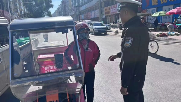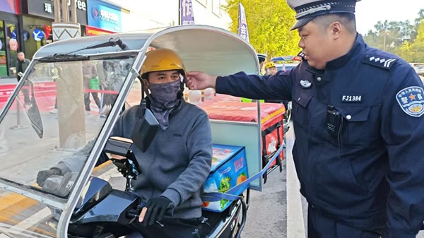 行動中,民輔警在城區(qū)電動車、摩托車通行集中路段,對摩托車、電動車逐輛進行檢查,對未正確佩戴安全頭盔的騎乘人員,現(xiàn)場講解正確佩戴頭盔的方法及佩戴頭盔的重要性和必要性。對未佩戴安全頭盔的騎乘人員進行教育、警告。并當面宣講交通安全法律法規(guī)等安全知識,詳細剖析駕乘電動車、摩托車不佩戴安全頭盔的嚴重危害和后果。尤其針對外賣、快遞等配送人員,民輔警在街頭逐一檢查車輛運行手續(xù)和安全性能、頭盔是否符合國家標準等情況,明確要求快遞配送人員必須發(fā)揮重點行業(yè)示范引領作用,時刻戴好安全頭盔,遵守交通法規(guī),做好交通安全的帶頭人。