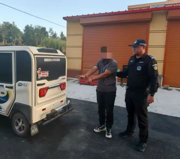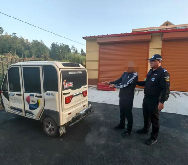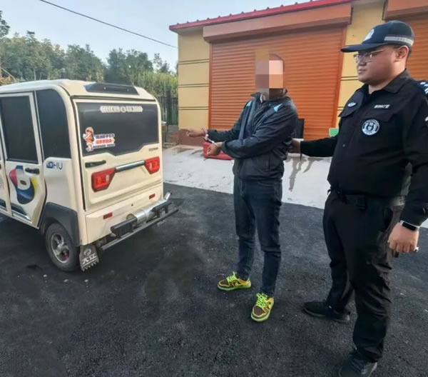 巡特警大隊民警根據(jù)現(xiàn)場情況,初步認(rèn)定邵先生的三輪車被他人盜走,隨著對該案件的調(diào)查及調(diào)取周邊監(jiān)控,發(fā)現(xiàn)17日當(dāng)晚18時40分在政府廣場被盜三輪車位置附近有三名男性,目標(biāo)清楚,分工明確,有計劃的將邵先生的電動三輪車盜竊開走,根據(jù)沿途交通卡口視頻排查發(fā)現(xiàn),肇東市五里明鎮(zhèn)居民張某、郭某、穆某確定為盜開邵先生電動三輪車嫌疑人,且該三人已將該被盜電動三輪車停放在肇東市五里明鎮(zhèn)一小區(qū)居民樓下。