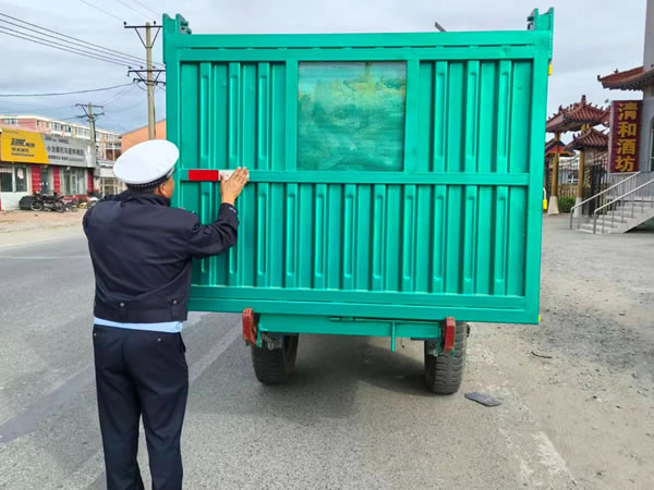 同時,積極開展“亮尾行動”。民警深入田間地頭和農(nóng)戶家中,為沒有粘貼反光標識和反光標識陳舊的農(nóng)用車輛及農(nóng)業(yè)機械粘貼反光標識,消除事故隱患。農(nóng)民朋友有的是沒時間或不知道到哪里買反光標識,宣傳民警親自上門免費粘貼,為他們解決了實際困難,農(nóng)民朋友表示由衷的感謝。