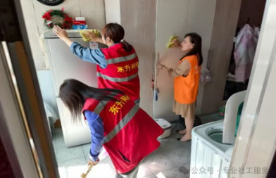 活動(dòng)中,社工站的同志和社區(qū)干部、網(wǎng)格員,明確分工、大家手持抹布、拖把等工具,來(lái)到張大娘的家中,對(duì)老人房間內(nèi)的雜物進(jìn)行分類(lèi)整理,重點(diǎn)擦拭玻璃、清潔地面、整理物品,確保不留衛(wèi)生死角。經(jīng)過(guò)數(shù)小時(shí)的辛勤勞動(dòng),張大娘家中環(huán)境煥然一新,為老人們創(chuàng)造了更加舒適、整潔的居住環(huán)境。