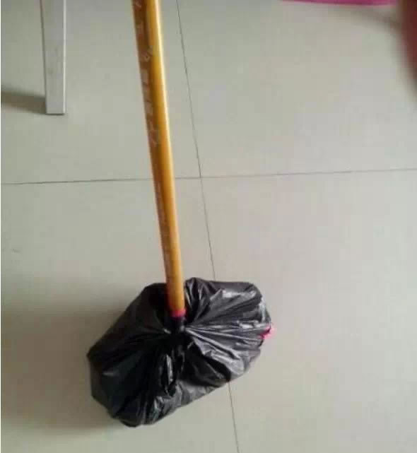 3.用塑料布包好拖把,地上的頭發(fā)會(huì)乖乖跟你走