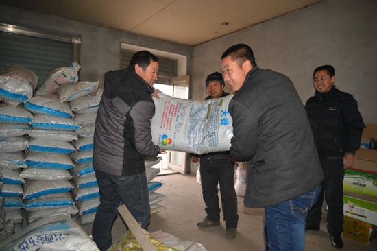 2月27日解永杰(右一)組織農(nóng)民裝運化肥。