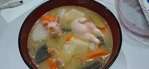 據(jù)報道,這些其實并不是真的豬,而是一個個制作逼真精細(xì)、由其他材料制成的仿制品。它們被烹制成所謂的“日式炸豬排”、“什錦湯”等料理,雖說構(gòu)思堪稱奇特,但大多數(shù)網(wǎng)友多反饋自己被“嚇了一跳”,并紛紛表示難以接受。