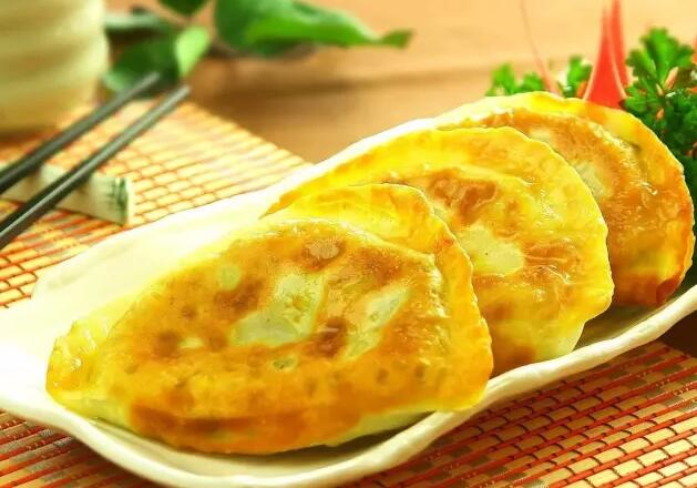 9、煎鍋放油燒熱,放入韭菜餅小火煎至兩面金黃即可