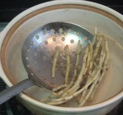 【提示】食用時(shí)魚腥草只能吃白根和葉,食用時(shí)必須用冷水泡,消除異味。冬春交際時(shí)其剛吐嫩芽,味道最佳。