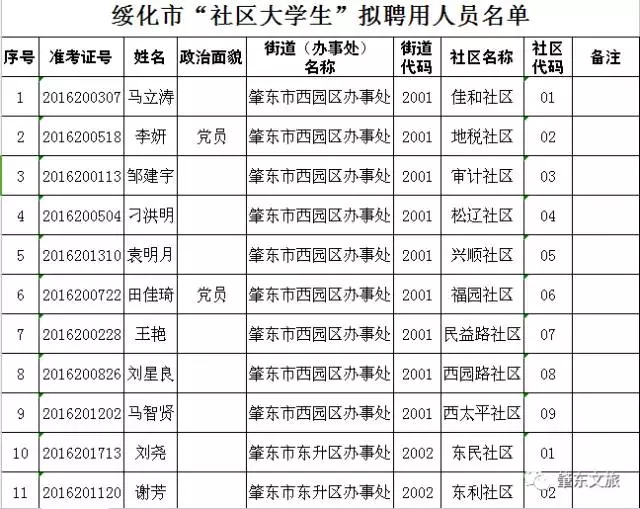 綏化市(肇東)“社區(qū)大學(xué)生”擬聘用人員公示